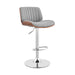 Brock Adjustable Gray Faux Leather and Walnut Wood with Chrome Finish Bar Stool