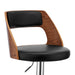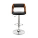 Paulo Adjustable Swivel Black Faux Leather and Walnut Wood Bar Stool with Chrome Base