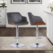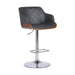 Toby Gray Faux Leather Adjustable Height Swivel Walnut Wood and Chrome Bar Stool