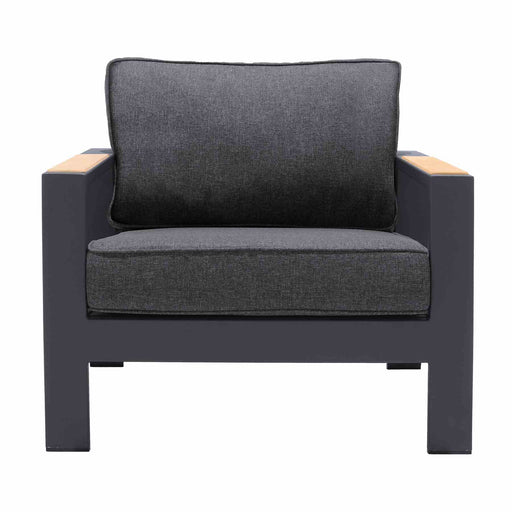 The Armen Living outdoor sofa chair in dark gray with teak wood accent and gray cushions is a novel piece, sure to enhance the beauty of any outdoo...