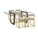Kai Anastasia 5 Piece Rectangular Glass Dining Table Set with Gold Brushed Stainless Steel and Taupe Fabric