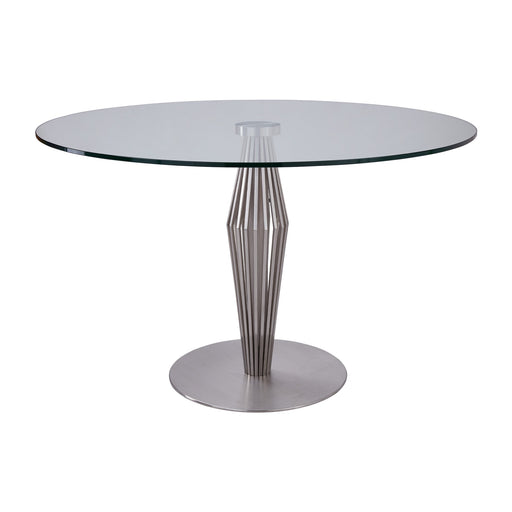 Original price - Original priceOriginal price$960.00$960.00 - $960.00Current price $960.00Lindsey Contemporary Dining Table in Brushed Stainless Steel Finish and Clear Glass top