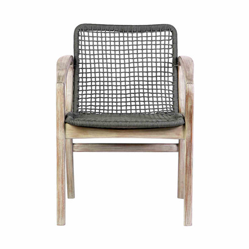Embrace a comfy retreat with our Mateo outdoor dining chair in eucalyptus wood and rope. The dynamic and sculptural profile of the dining arm chair...