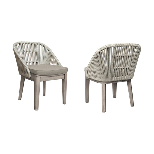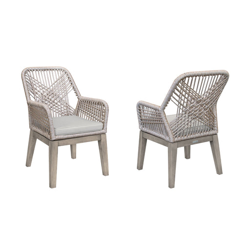 The Haiti Outdoor Patio Dining Chairs with Arms in Gray Acacia Wood and Rope – set of 2 are the perfect outdoor addition for your home, apartment, ...