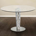 Crystal 48" Round Dining Table in Gray Walnut Veneer column and Brushed Stainless Steel finish with Clear Tempered Glass Top