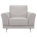 The Armen Living Everly contemporary genuine leather sofa chair features a cutting-edge design that is certain to enhance the beauty of any modern household. A wonderful choice for the living room, the Everly chair brings you the sophistication of genuine cowhide leather supported by plush Dacron padding to prevent wrinkles and cracks through prolonged use. The Everly's style is unique, featuring a traditional appearance accented by contemporary brushed stainless steel legs.