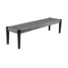 The 71-inch-wide Rhett dining bench features a unique rope weave which also allows for easy drying if it happens to get wet. The combination of rope and eucalyptus wood offers warmth and texture. This outdoor 5-piece dining set is available with a dark eucalyptus wood finish, black rope on the dining chairs, gray rope on the dining benches, and a black finish on the table and dining chairs.