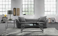 • Palisade Contemporary Sofa in Gray velvet with brown wood legs