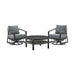 The cushions are reversible, removable, and convenient as the zipper closure allows you to easily remove the covers for cleaning. Built with quality craftsmanship, the chair is treated to last for many years to come against UV, water, rust, and other outdoor elements. The Palma 3-piece outdoor furniture set features a black aluminum finish with gray wicker and dark gray upholstery.
