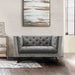The Armen Living Regis contemporary sofa chair is a beautiful addition to the modern household. Part of the Regis collection, this beautiful chair features a sturdy hardwood frame upholstered with stylish tufted fabric. Ideal when paired with the Regis loveseat and sofa, the Regis accent chair works brilliantly in the living room, but is practical enough to work well in just about any room of the house. Available in your choice of Gray fabric.