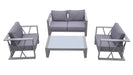 St Barts 4 piece Outdoor Patio Aluminum Set with Gray Fabric Cushions and White Glass Top