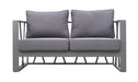 The Armen Living St. Barts 4 piece outdoor patio set is an ideal choice for any modern household patio. This sleek and stylish assemblage features two armchairs, a loveseat, and a coffee table. Elegantly designed and practical, the St. Barts pieces feature durable aluminum frames that are lightweight and dependable. The novel design of St. Barts is matched only by the plush of the assemblage's plump, foam padded back and seat cushions. The white glass top of the St.