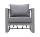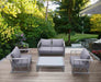 Barts table further complements the elegance and beauty of the rest of the piece. 100% waterproof, the St. Barts set is certain to maintain its durability for many years to come. The St. Barts 4 piece set is available in a gray powder coated finish and comes with gray fabric cushions.