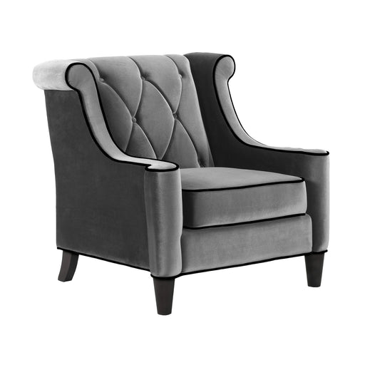 Original price - Original priceOriginal price$1,000.00$1,000.00 - $1,000.00Current price $1,000.00Barrister Chair In Gray Velvet with Black Piping