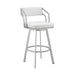 Capri 30" Swivel White Faux Leather and Silver Metal Bar Stool