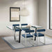 Kai Anastasia 5 Piece Rectangular Glass Dining Table Set with Brushed Stainless Steel and Blue Fabric