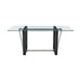 Give a sophisticated upgrade to your dining area with the Kai Anastasia Dining Set by Armen Living. This set includes 1 Kai Rectangular Glass Dining Table with Metal base and 4 Anastasia Upholstered Dining Chairs. The crisp and clean-lined design of our dining set offers modern drama and elegance. The rectangular, glass tabletop beautifully balances on a streamlined metal base. The sharp angles and contrasting finishes lend a touch of polish and definition to our dining table.