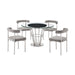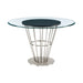 Veronica Shannon 5 Piece Round Glass Dining Table Set with Brushed Stainless Steel and Light Gray Fabric