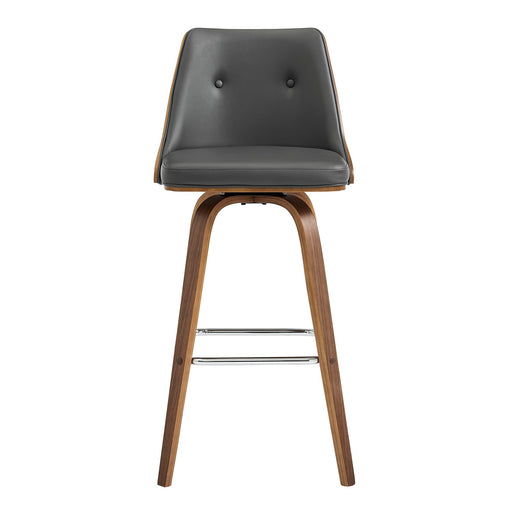 The Arabela 26" Gray Faux Leather and Walnut Wood Swivel Bar Stool from Armen Living features a clean design that is ready to complement any home d...