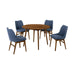 Arcadia and Azalea 42" Round Blue and Walnut Wood 5 Piece Dining Set