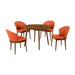 Arcadia and Juno 42" Round Orange and Walnut Wood 5 Piece Dining Set