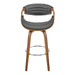 The Arya 30" Bar Height Bar Stool in Gray Faux Leather and Walnut Wood from Armen Living will reveal the chic and artistic side of your personality right in your home. The design of the Arya is fun and unique - detailing clean fabric lines and a novel shape that make this piece so special. The Arya features a 360-degree swivel function that allows you to keep the conversation going in any direction!