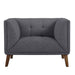 Hudson Mid-Century Button-Tufted Chair in Dark Gray Linen and Walnut Legs