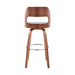 The Julius 26" Gray Faux Leather and Walnut Wood Bar Stool from Armen Living is the perfect stool to introduce into your already beautiful home. The Julius features a swivel function that allows you to turn 360-degrees, offered for your convenience! The open seat back and wide seat cushion gives you exceptional room and comfort. The Julius frame is crafted to be stable, sturdy, and, strong - also designed with a built-in metal footrest!