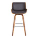 Add some Mid-Century Modern flair to your home with the Armen Living Tyler 26" Swivel Brown Faux Leather and Walnut Wood Counter Stool! Featuring a retro style silhouette, the Tyler bar stool showcases function, convenience, and timeless beauty. The 360-degree swivel functionality gives you the mobility you need when sitting or entertaining and allows you to easily engage with any of your guests regardless of their place in the room!