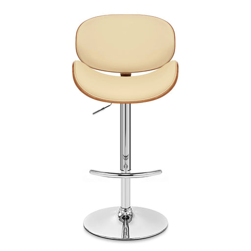 The Armen Living Aubrey Adjustable Height Swivel Cream Faux Leather and Chrome Bar Stool with Walnut Wood is the perfect addition to any modern hou...