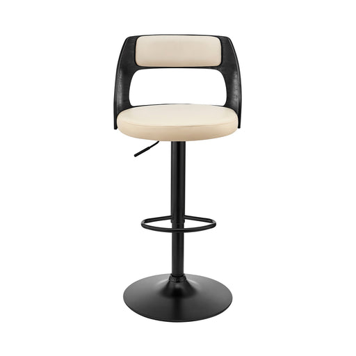 The Thierry Modern Adjustable Cream Faux Leather and Matte Black Wood Barstool from Armen Living is the staple barstool you have been searching for...