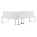 The Armen Living Amanda 3-piece dining set is both simple but elegant that will complete any contemporary style dining room. The 3-piece set includes: the Amanda dining table, white dining bench and white corner nook sofa. The table has sleek metal base, complimented with a beautiful white MDF wood top. The Amanda bench and sofa features soft faux leather upholstery for optimum comfort.