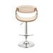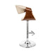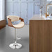 Gionni Adjustable Swivel Cream Faux Leather and Walnut Wood Bar Stool with Chrome Base