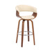 Julyssa 30" Bar Height Swivel Cream Faux Leather and Walnut Wood Bar Stool