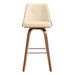 The Nolte 26" Counter Height Bar Stool in Cream Faux Leather and Walnut Wood from Armen Living is the perfect stool to introduce into your already beautiful home. The wonderful upholstery is elegantly wrapped around the seat back and cushion for a luxurious look and feel. The thick foam-padded seat back and cushion are built with your comfort in mind - we are looking to make this your favorite seat in your home. The Nolte features a 360-degree swivel function that allows for extra mobility.