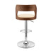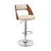 Paulo Adjustable Swivel Cream Faux Leather and Walnut Wood Bar Stool with Chrome Base