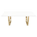 Mirage Rectangular Dining Table w/ White Lacquer Top and Polished Gold Metal Base by Diamond Sofa