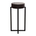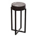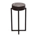 The Alex Small Accent Table features a round Solid Mango Wood Top in Espresso finish w/ Silver Metal Inlay accent detail atop an Iron criss-cross base. Simplistic in Design, Stunning in Detail, the Alex accent tables are the perfect addition to any room's decor. Can be used in tandem or featured independently, they are ideal for contemporary or modern interiors, but also a wonderful table for industrial or loft environments. Table is 10" x 10" x 22".