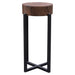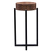 The Alex Small Accent Table features a round Solid Mango Wood Top in Walnut finish w/ Gold Metal Inlay accent detail atop an Iron criss-cross base. Simplistic in Design, Stunning in Detail, the Alex accent tables are the perfect addition to any room's decor. Can be used in tandem or featured independently, they are ideal for contemporary or modern interiors, but also a wonderful table for industrial or loft environments. Table is 10" x 10" x 22".