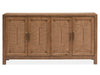 With its sophisticated squared silhouettes and modern lines and Lindon sets the stage for iconic dining experiences. The Lindon trestle or rectangular dining table makes a bold statement and offering ample space for gatherings while serving as a stunning focal point. Pair it with your choice of dark side chairs and light side chairs with upholstered seats and upholstered armchairs and or a low-back bench to suit your style and needs. The collection’s buffet and two-tone display cabinet deliver a harmonious blend of Belgian Wheat and Coffee Bean finishes over random Cathedral and Quartered Knotty White Oak veneers and combining beauty with functionality. Burnished Brass hardware and open metal accents complete the look and creating a dining room that is as expressive as it is timeless.