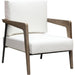 Blair Accent Chair in White Fabric with Curved Wood Leg Detail