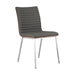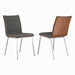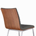 Café Brushed Stainless Steel Dining Chair in Gray Faux Leather with Walnut Back - Set of 2