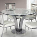 The Cleo round dining table with 48" clear tempered glass top with stainless steel base is a beautifully made table that will add style and beauty to your dining area. The base of this dining set is beautifully constructed with even metal curved legs that are adjoined on a metal stainless steel base. It is sturdy, built to stun, and never makes for a boring dining experience. Add a touch of sophistication and glamour to your home with this modern dining table.