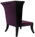 Make any room in your home into a throne with the Mad Hatter, the perfect chair fit for a king or queen. This item feature velvet soft and smooth upholstery for all day comfort. The extra high back help with posture alignment while keeping you cozy and protected all day. Accompanied by soft back pillow and black solid wood tapered legs for a dramatic feel. This item ship in one box with no set up hassle, the item shipped fully assembled. The Mad Hatter is available in Black, Gray, and Purple.