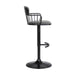 Nash Adjustable Black Wood Bar Stool in Gray Faux Leather with Black Metal