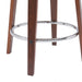 The Pico bar or counter stool is available in your choice of a walnut wood finish with gray, cream, or brown faux leather upholstery and chrome footrest, or a black wood finish with gray faux leather or light gray fabric upholstery and black footrest.