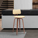 Update your casual meals and cocktail hours with the modern charm and elegance of our Pico Upholstered Swivel Bar or Counter Stool. With bentwood construction, our bar stool features a beautifully curved seat and back, embracing your body with comfort. It is complemented with sculptural bentwood legs to bring signature modern style to your bar or high dining table. Completed with a footrest and upholstered seat, the counter stool promises a comfortable stay.
