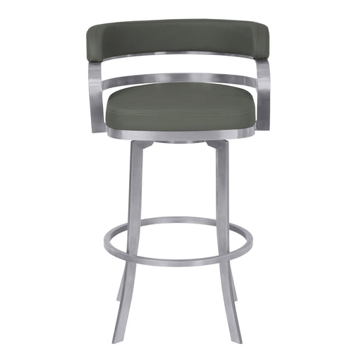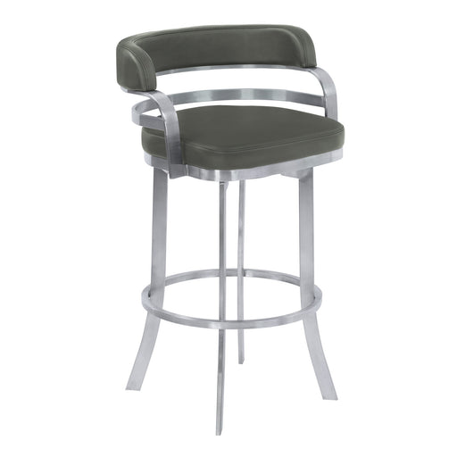 Style meets comfort with the Armen Living Prinz 30" Bar Height Swivel Gray Faux Leather and Brushed Stainless Steel Bar Stool. The Prinz kitchen st...