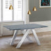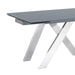 Ace Contemporary Extension Dining Table in Gray Powder Coated Finish with Brushed Stainless Steel and Gray Tempered Glass Top