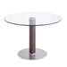 Simple and functional. The Café dining table demonstrates refined design features with its stainless steel base and walnut veneer vertical post with round glass top. Add a touch of sophistication and glamour to your home with this modern dining table.